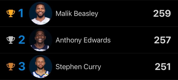 2025-03-12 15:47:57最終誰會第1?聯盟三分榜前3:比斯利259 華子257 庫里251