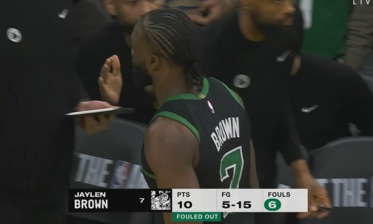 2025-03-13 11:42:15今天拉了!杰倫-布朗外線狂打鐵 全場15中5得10分且6犯離場!