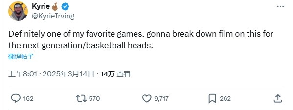 2025-03-14 16:33:44籃網(wǎng)時(shí)期單核帶隊(duì)砍54分!歐文回復(fù)美媒:這是我最喜歡的比賽之一