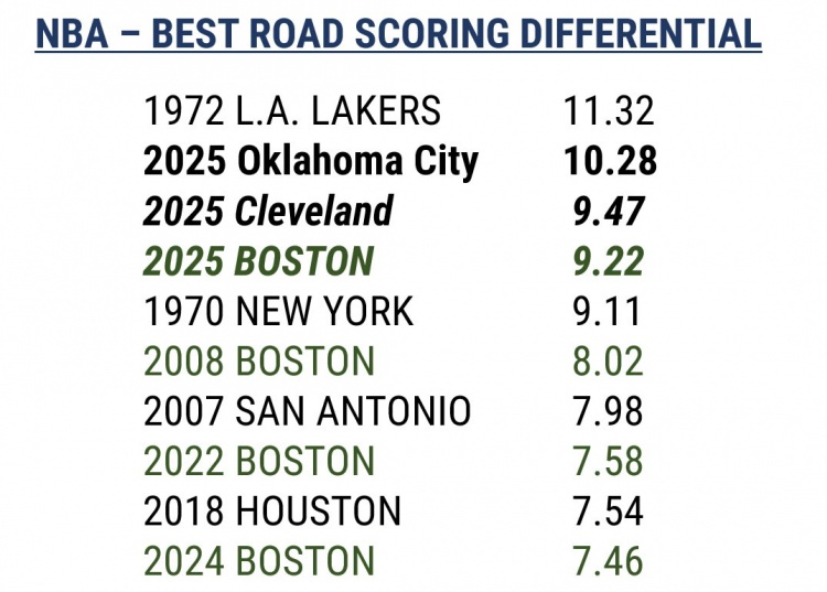 2025-03-15 11:35:19歷史單賽季客戰場均凈勝分榜:72年湖人第一 今年雷騎綠有望沖擊