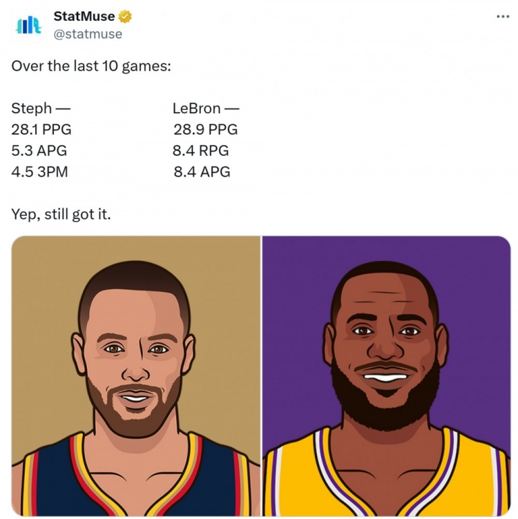2025-02-25 00:14:23寶刀未老!近10戰庫里場均28.1分&進4.5三分 詹姆斯28.9+8.4+8.4