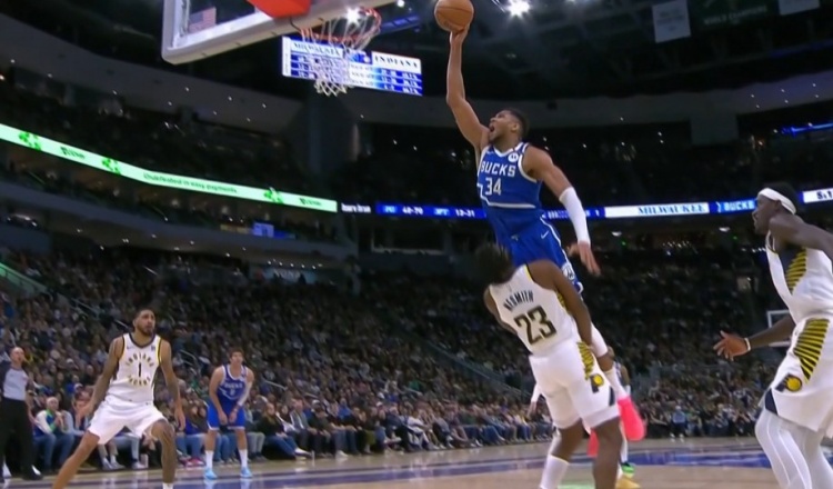2025-03-16 13:28:09視覺效果炸裂!字母哥絲滑轉(zhuǎn)身單臂隔扣內(nèi)史密斯 可惜吹進攻犯規(guī)