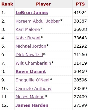2025-03-22 20:42:25哈登總得分距離歷史第十一的摩西-馬龍還差10分 下一場對陣雷霆