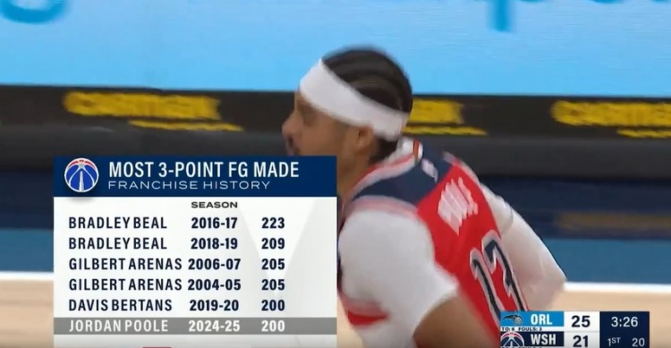 2025-03-22 21:37:05祖上不富裕!普爾本賽季已命中200記三分 距隊史最高紀錄還差23記