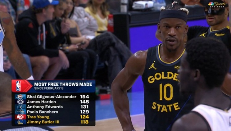 2025-03-23 12:25:51截止日以來罰球總數Top6:亞歷山大154次力壓哈登 巴特勒第六