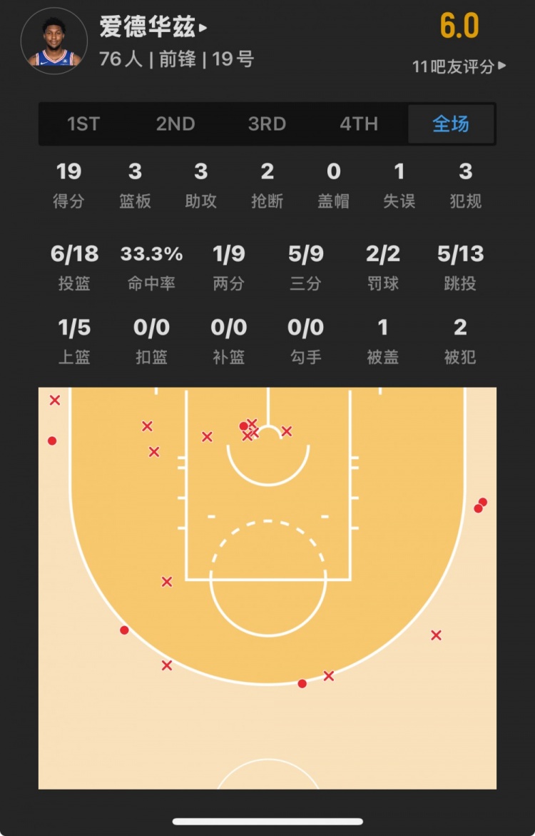 76人41號(hào)秀 阿德姆-博納 登場19.2分鐘