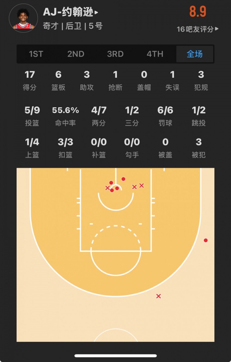 奇才23號(hào)秀 AJ-約翰遜 登場28.4分鐘