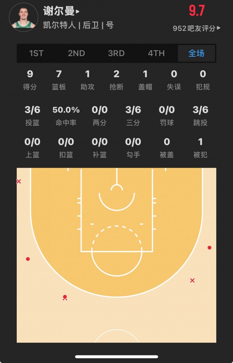 凱爾特人30號(hào)秀 貝勒-謝爾曼 登場28.2分鐘