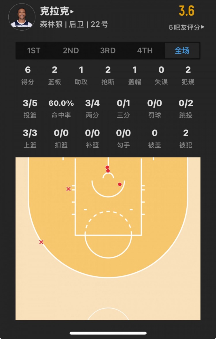 森林狼23年53號(hào)秀 杰倫-克拉克 登場18.5分鐘