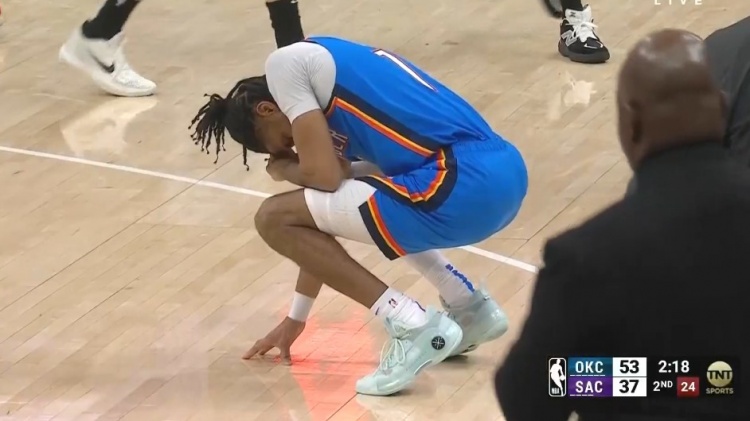 2025-03-26 13:34:07暈乎了!以賽亞-喬和埃利斯爭搶球 被后者坐到臉部貼地&下場檢查