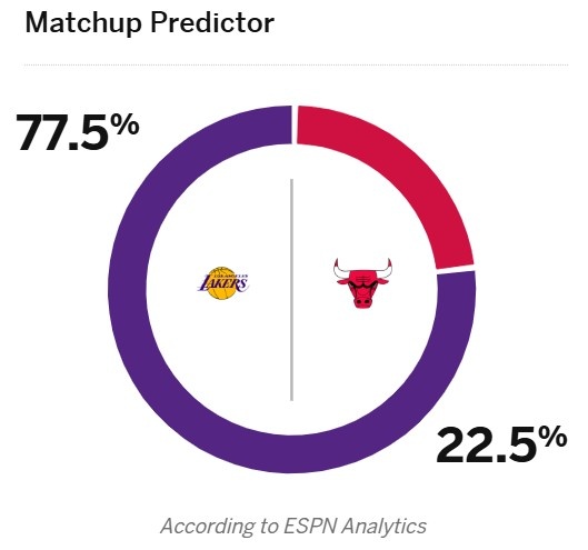 2025-03-27 21:27:32此前被公牛虐31分&明日再戰!ESPN預測勝率:湖人高達77.5%