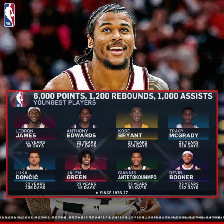 至此,杰倫-格林生涯得分、籃板、助攻數(shù)來到了6040/1283/1003,他成為了聯(lián)盟自1976-77賽季合并以來達成生涯6000分1200板1000助第六年輕的球員(23歲46天),具體如下: