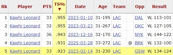 2025-03-29 22:03:25小卡今天以93.1%真實(shí)命中率砍下30+ 生涯152場(chǎng)30+中第4高效