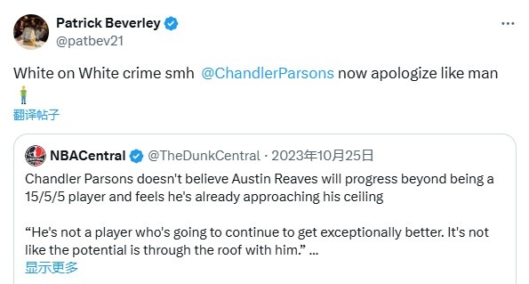 2025-03-31 20:36:26“15+5+5是里夫斯的極限”!貝弗利打臉帕森斯:像個男人出來道歉