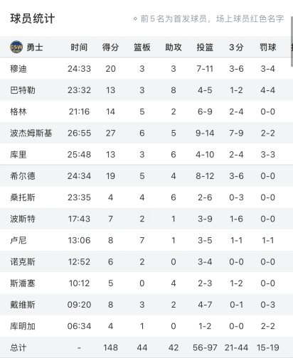 2025-03-31 20:38:25全員發(fā)揮!勇士出戰(zhàn)13人全部都有得分入賬 庫(kù)追巴只出戰(zhàn)3節(jié)
