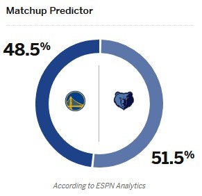 2025-04-01 14:24:05關鍵卡位戰!ESPN預測明日勇士獲勝概率為48.5% 灰熊51.5%