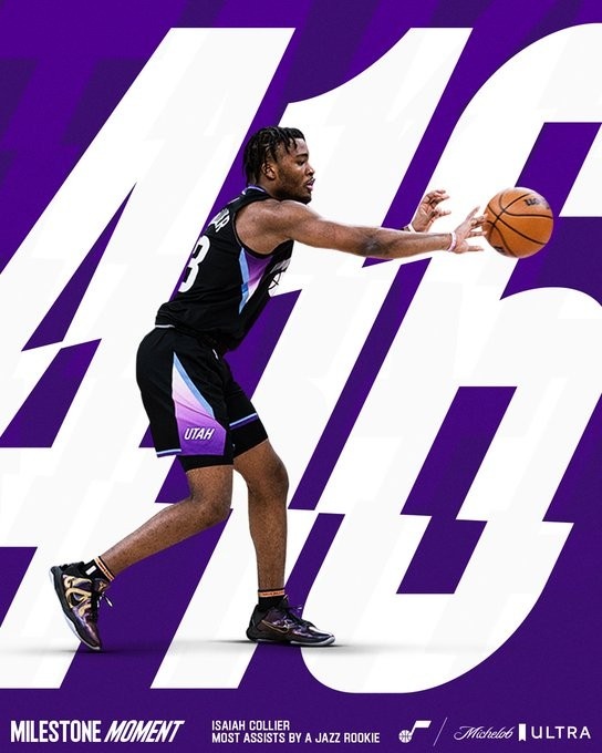 2025-04-01 14:24:09科利爾送出416次助攻 打破斯托克頓40年前創造的爵士隊史新秀紀錄