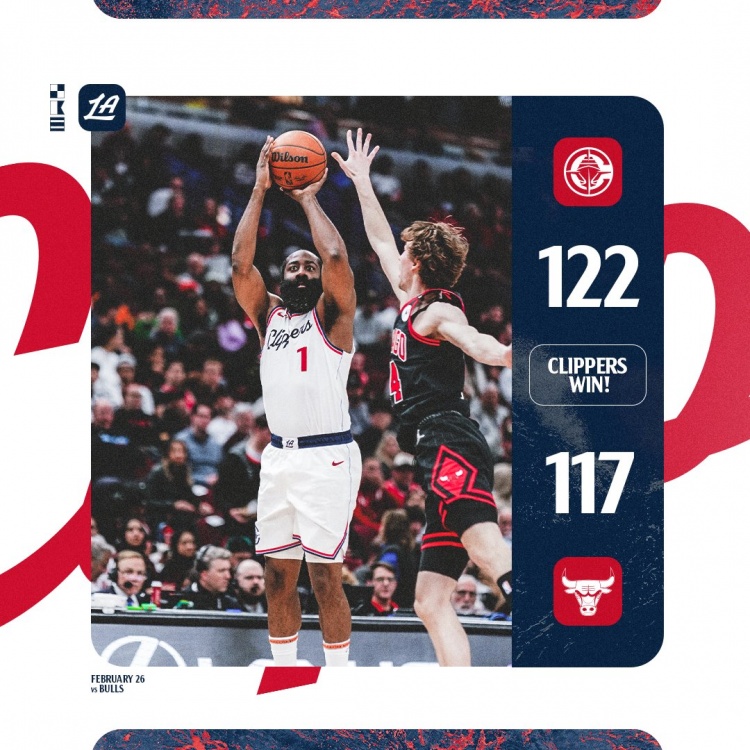 2025-02-27 15:17:54砍30分6助&關(guān)鍵三分殺死比賽!快船官方贏球海報(bào)封面人物:哈登