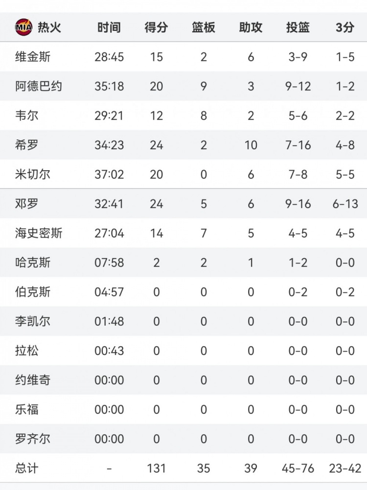2025-02-27 15:19:14多點開花!熱火全隊7人得分上雙&4人20+ 希羅24分/維金斯15分