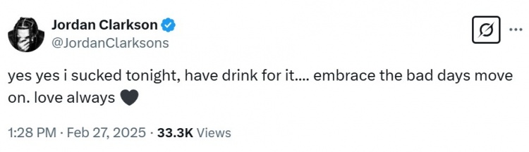 2025-02-27 20:17:5914中1!克拉克森:我今晚太爛了 要擁抱糟糕的歲月 繼續(xù)前進(jìn)