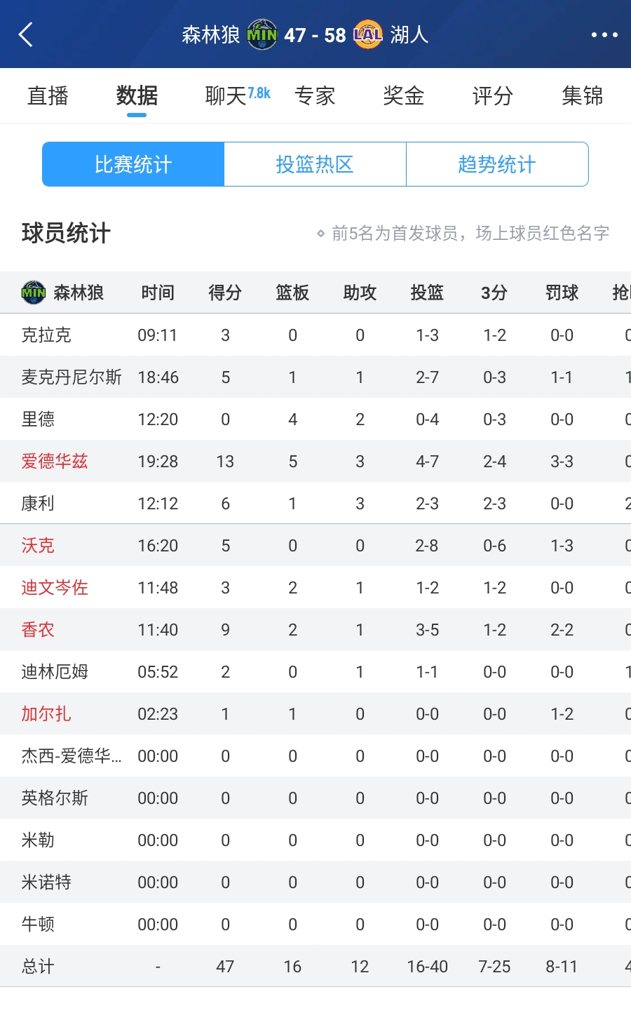 2025-02-28 15:18:18還在找出手時機!愛德華茲半場7中4&三分3中2拿到13分5板3助