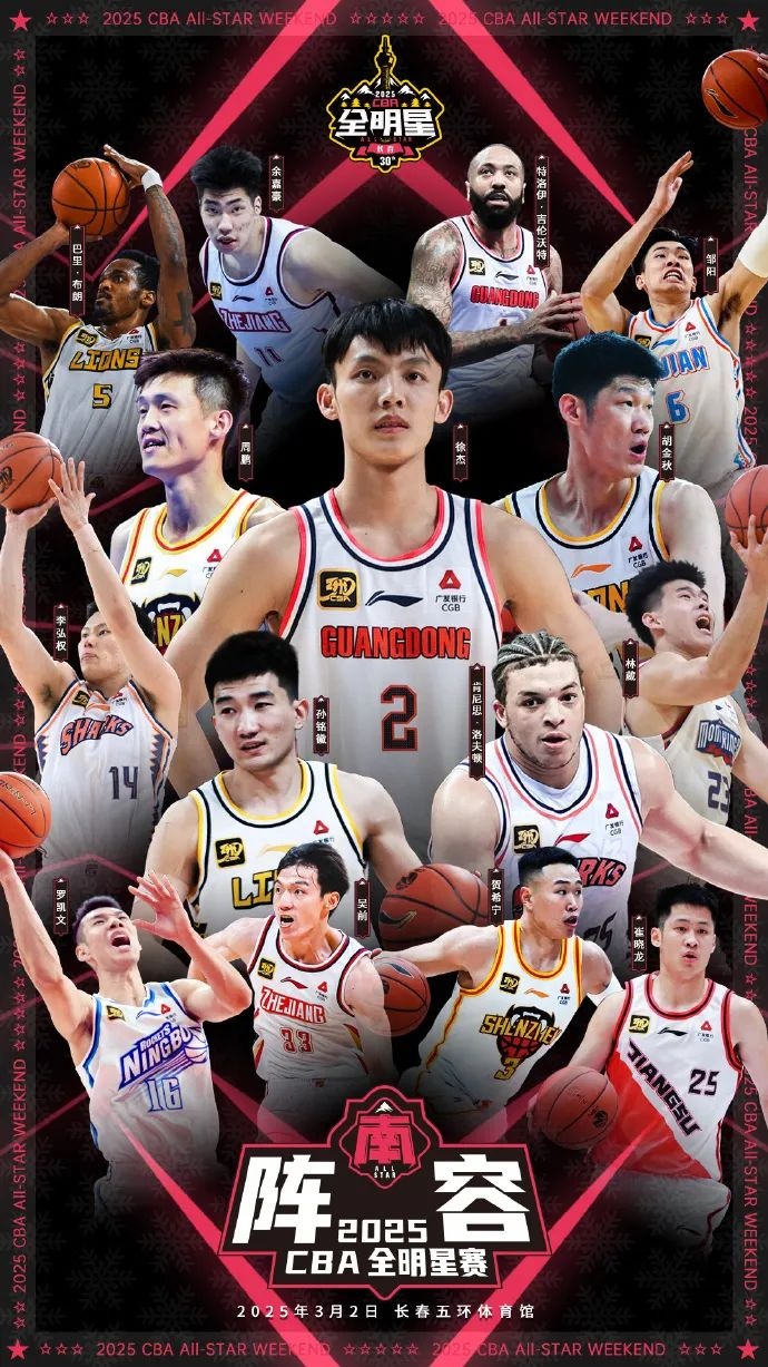 何為全明星賽?說白了就是球星歡聚一堂給球迷們獻禮的比賽。顯然,CBA聯賽只讀懂了“歡聚一堂”這個詞。2025年CBA全明星周末正賽的名單是: