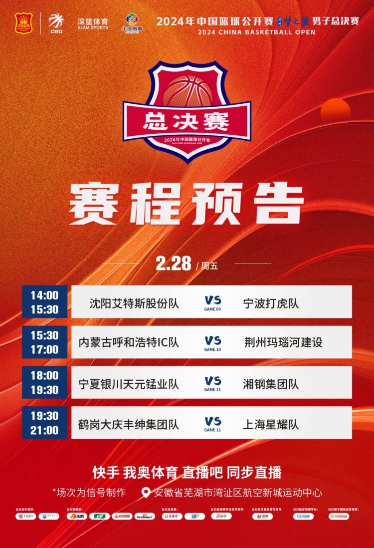 2月27日,2024年中國籃球公開賽洋河夢之藍男子總決賽進入到第二個比賽日。在本輪比賽中,湘鋼集團、寧波打虎、艾特斯股份、寧夏天元錳業獲勝。