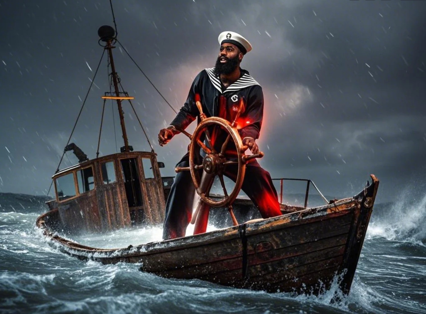 2025-03-06 15:08:00【AI繪圖】大胡子船長率風雨飄搖中即將沉沒的小破船重回正軌~