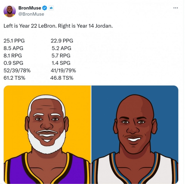 2025-03-07 16:37:48美媒:第22季詹姆斯25+8+8&三分39% 第14季喬丹23+5+5&19%