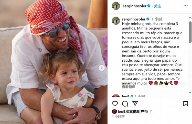 2025-02-24 15:05:52塞爾吉尼奧社媒為女兒慶生:小胖妞三歲了,我們深深愛著你??
