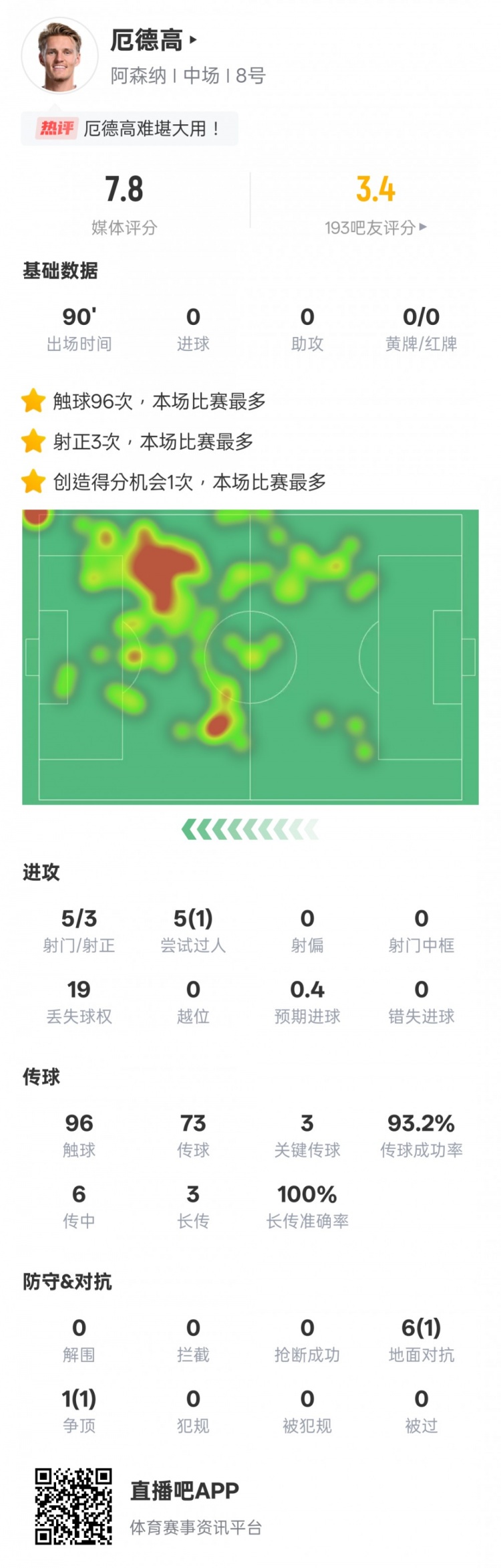 2025-03-10 03:15:53厄德高本場數據:3關鍵傳球&創(chuàng)造1次進球機會,評分7.8