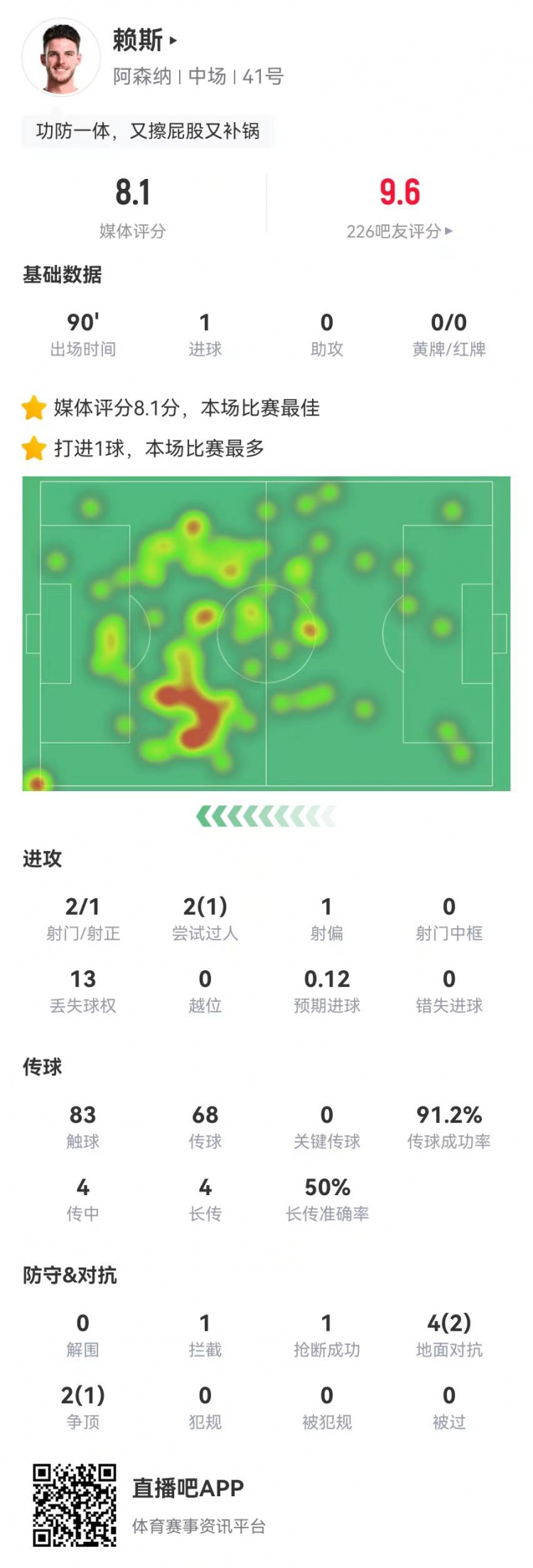 2025-03-10 03:15:55賴斯本場(chǎng)1球+1救險(xiǎn) 6對(duì)抗3成功 4傳中0成功 獲評(píng)8.1分全場(chǎng)最高