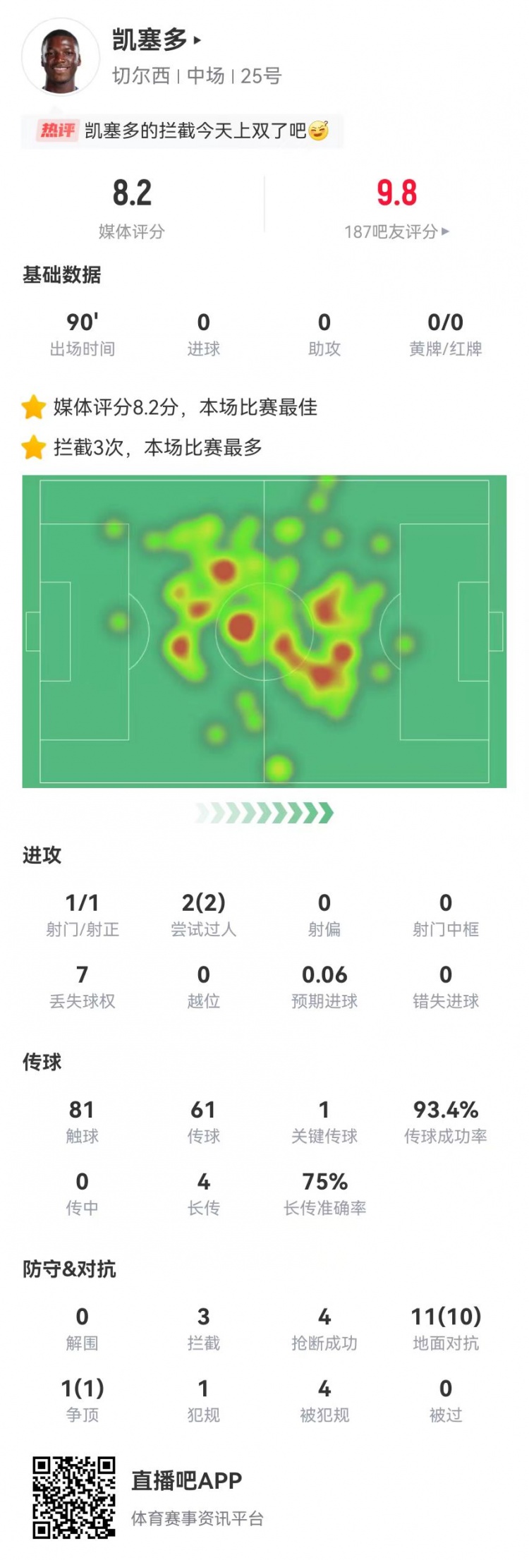 2025-03-10 03:19:40凱塞多本場12對抗11成功+4造犯規 3攔截4搶斷0被過 獲評8.2分最高