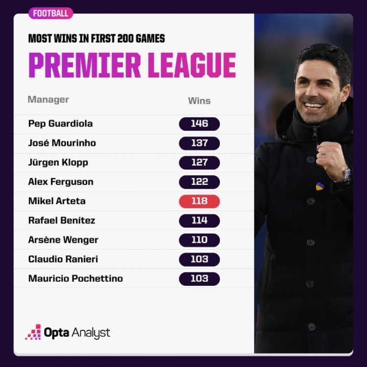 2025-03-10 07:06:34英超主帥前200場勝率榜前五:瓜帥、穆帥、渣叔、弗爵、塔帥