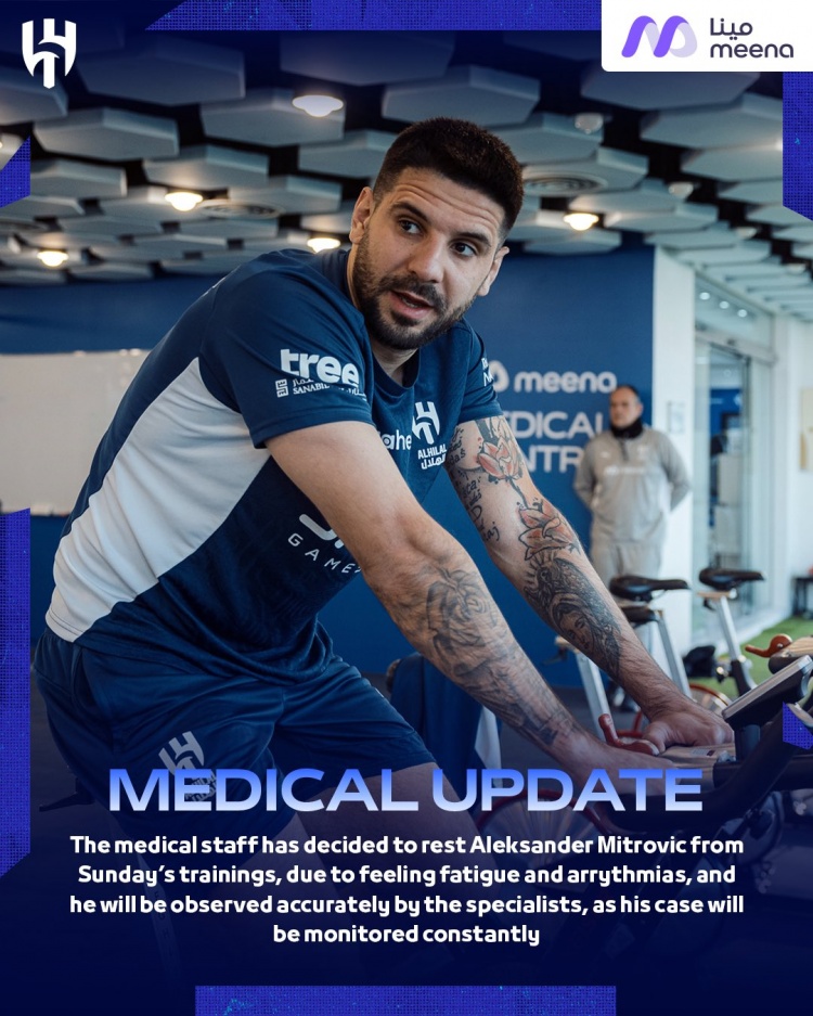 2025-03-10 12:57:33新月官方:因感到疲勞和心律不齊,米特洛維奇周日訓練休息