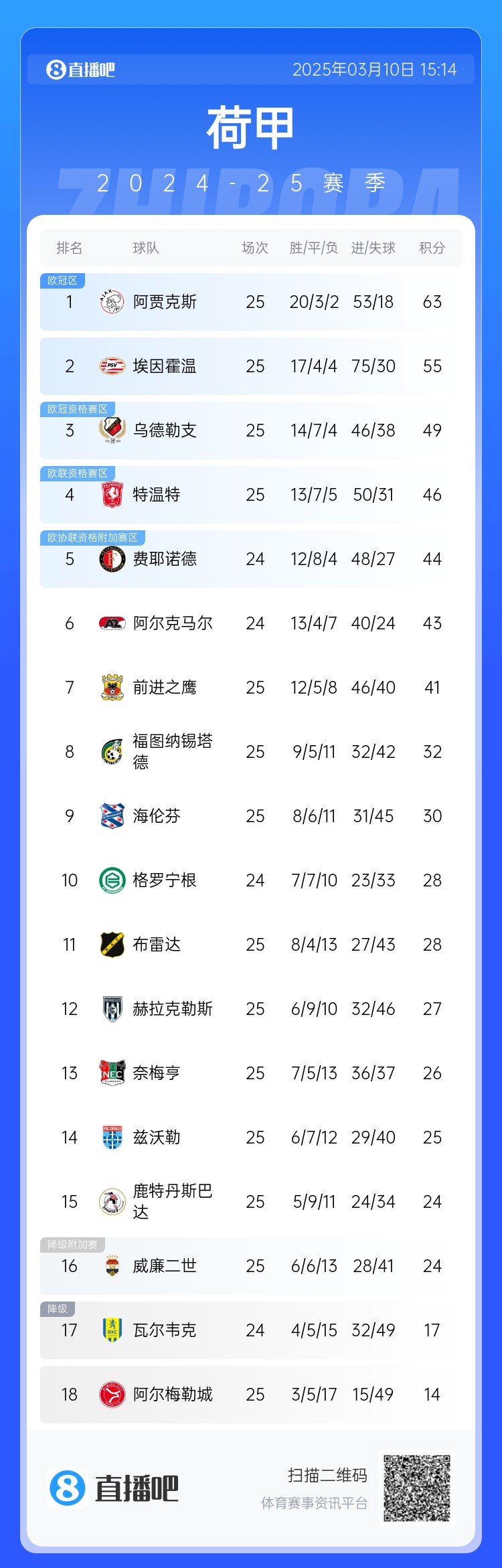 2025-03-10 20:03:16賈府回來了?35歲少帥率領阿賈克斯豪取荷甲10連勝,剩9輪8分領跑
