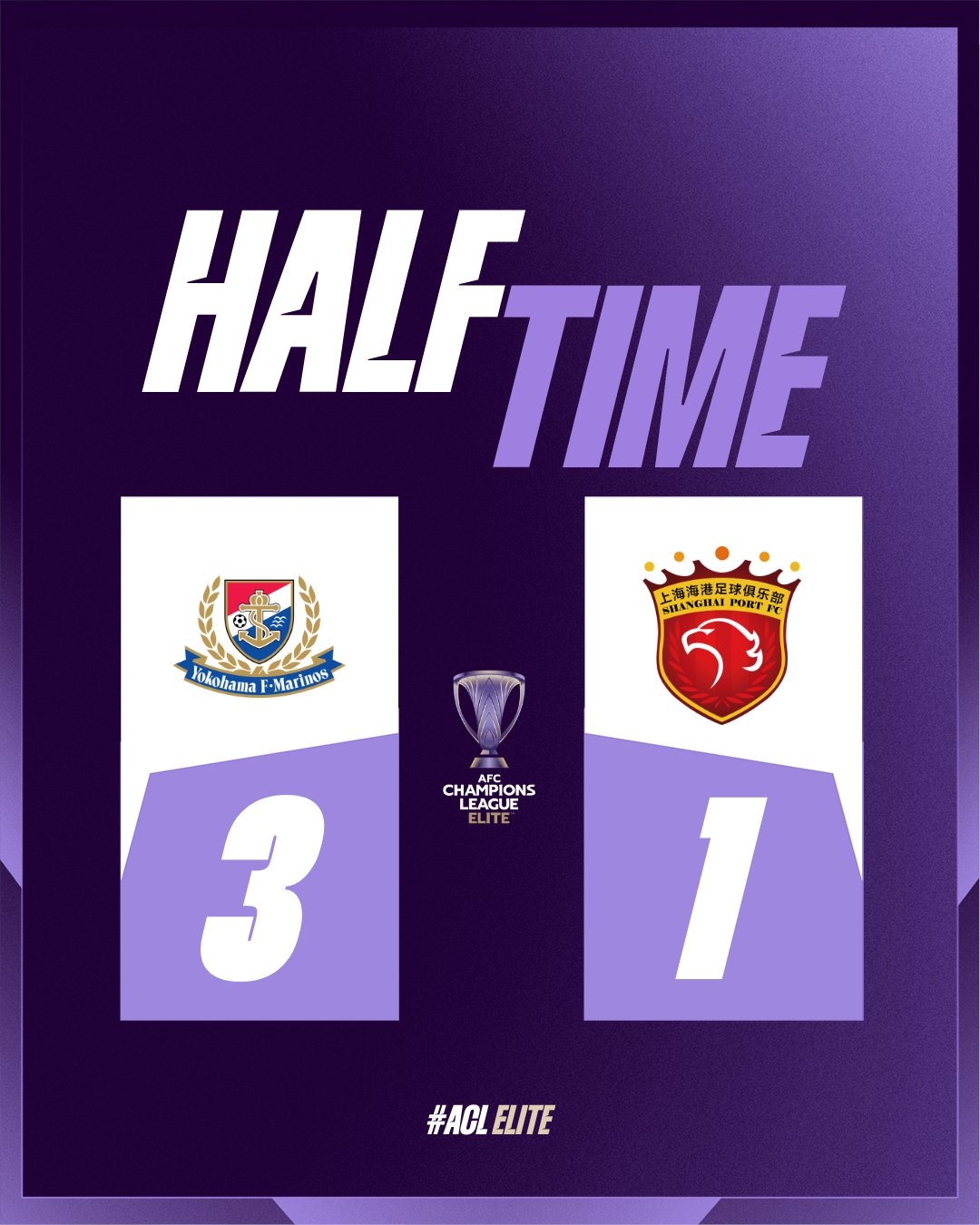 傷停補時4分鐘。上半場比賽結束,上海海港1-3橫濱水手。
