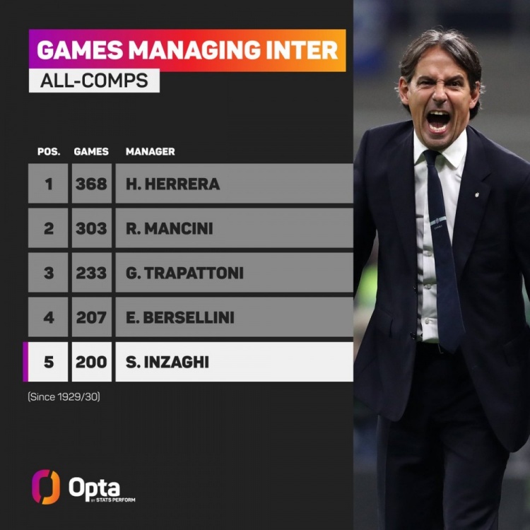 2025-03-12 04:09:53小因扎吉達(dá)成執(zhí)教國(guó)米各項(xiàng)賽事200場(chǎng)里程碑,是隊(duì)史第5人