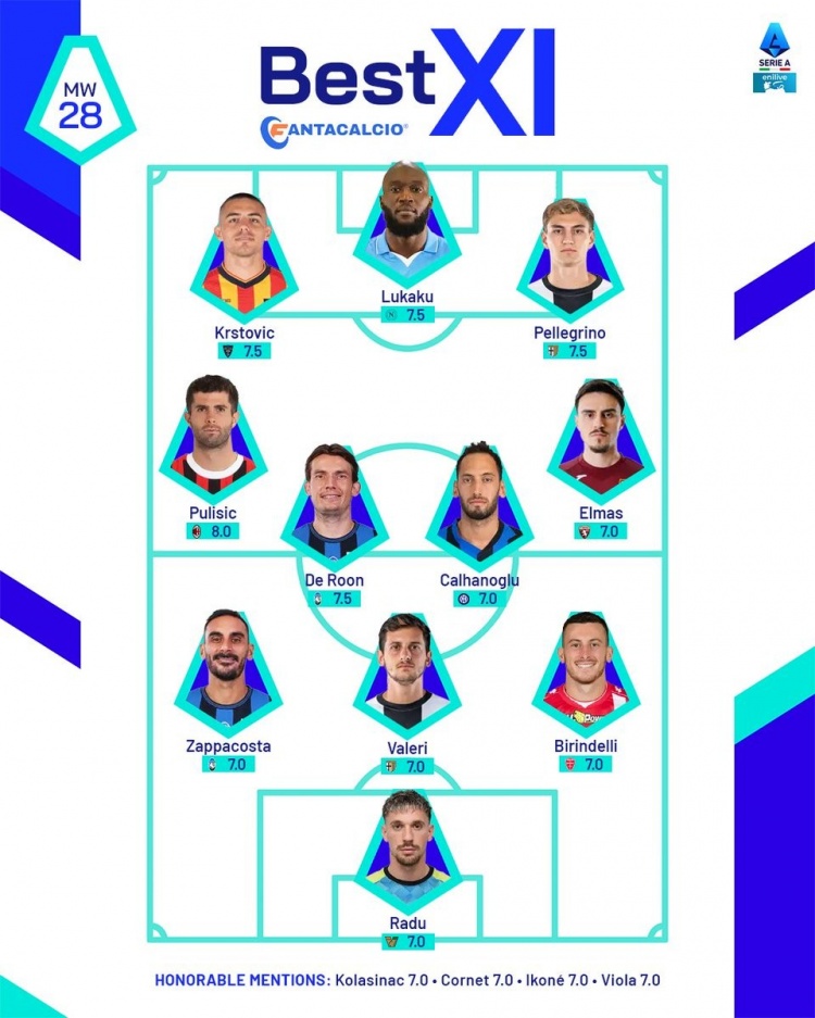 2025-03-12 04:13:15意甲官方本輪最佳陣:普利西奇、恰20領(lǐng)銜,盧卡庫、拉杜在列