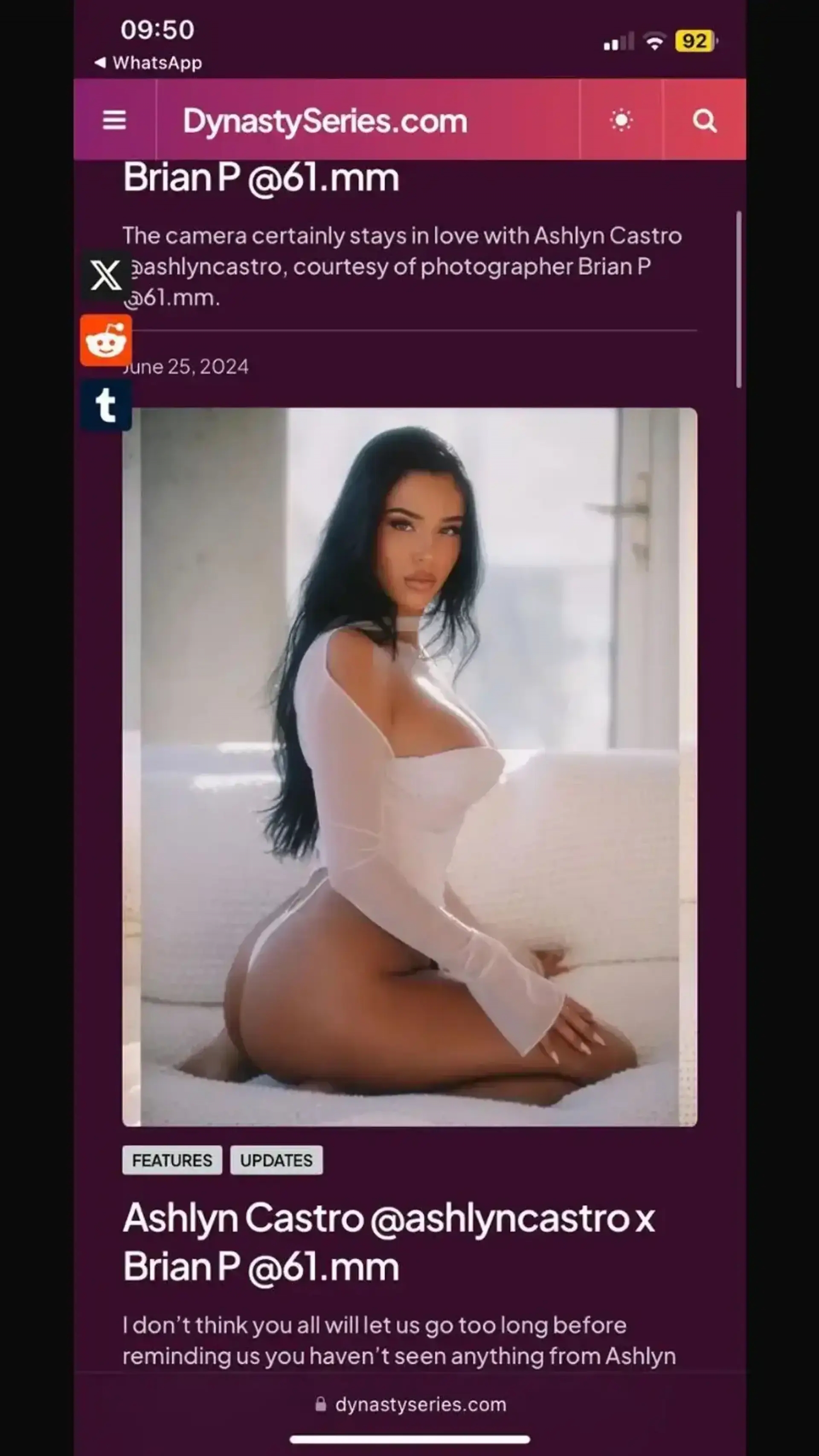 03月12日訊 上月末,有小道消息傳出貝林厄姆的女友阿什林-卡斯特羅(Ashlyn Castro)有著不光彩的過往,她的照片出現在了一家高端應召女網站的頁面。此后關于阿什林曾是妓女的謠言在社媒上傳播開來。