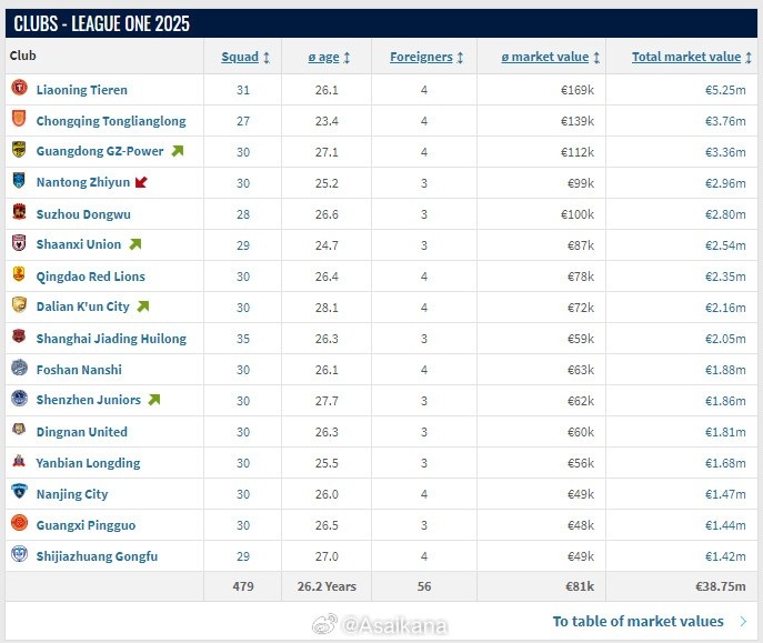 2025-03-12 12:36:43遼寧鐵人總身價525萬歐元,為新賽季中甲最高