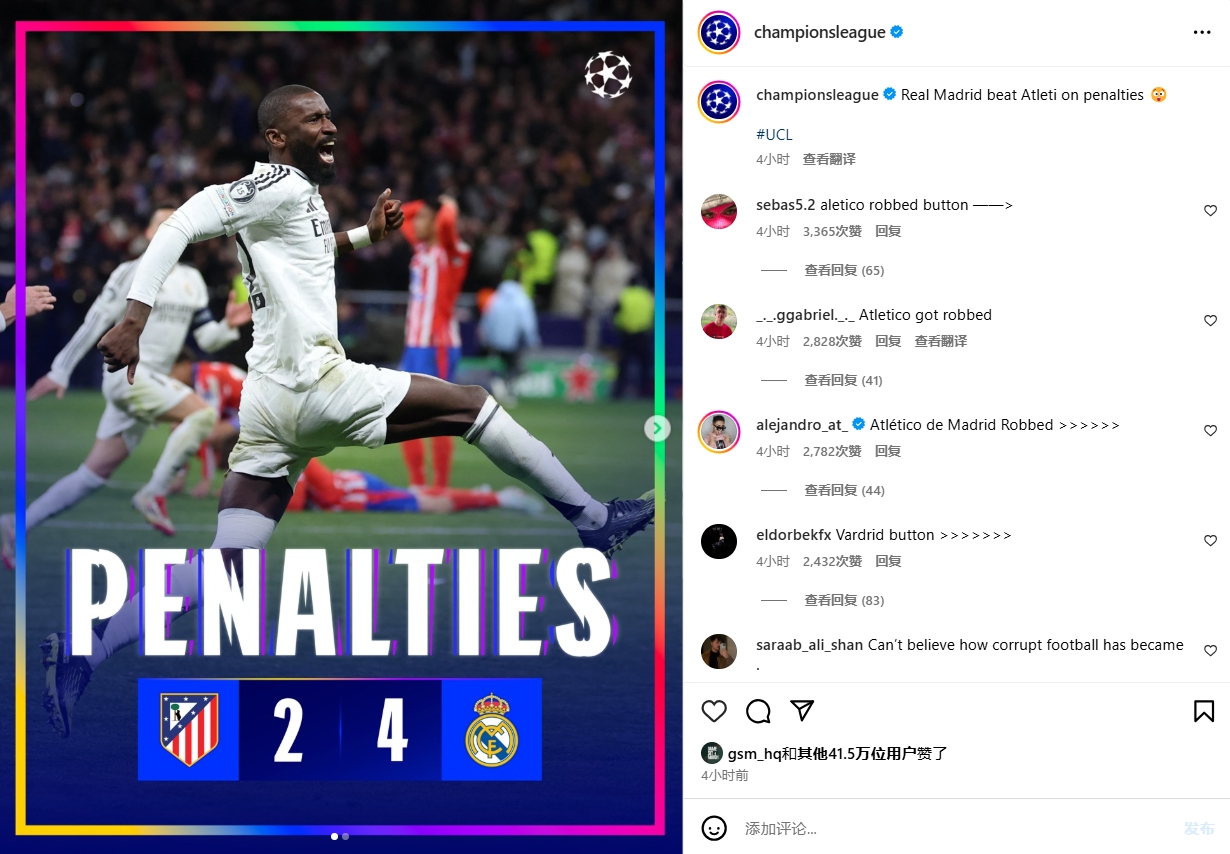 2025-03-13 17:26:34歐冠官方ins評(píng)論區(qū)被刷屏:馬競(jìng)被搶劫了 足球竟腐敗到這個(gè)地步