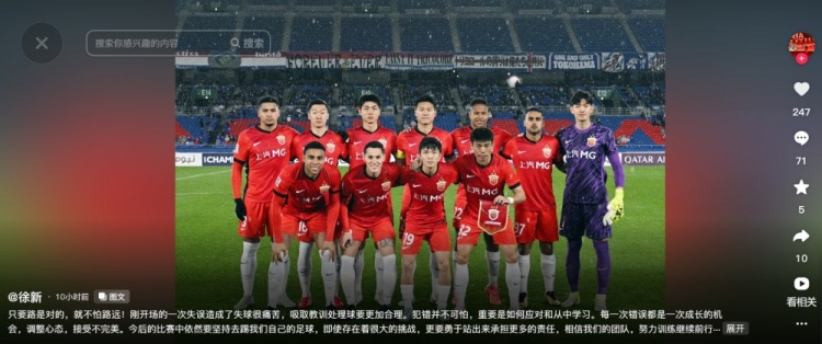 3月13日訊 海港球員徐新更新社媒,談到了自己亞冠的表現。