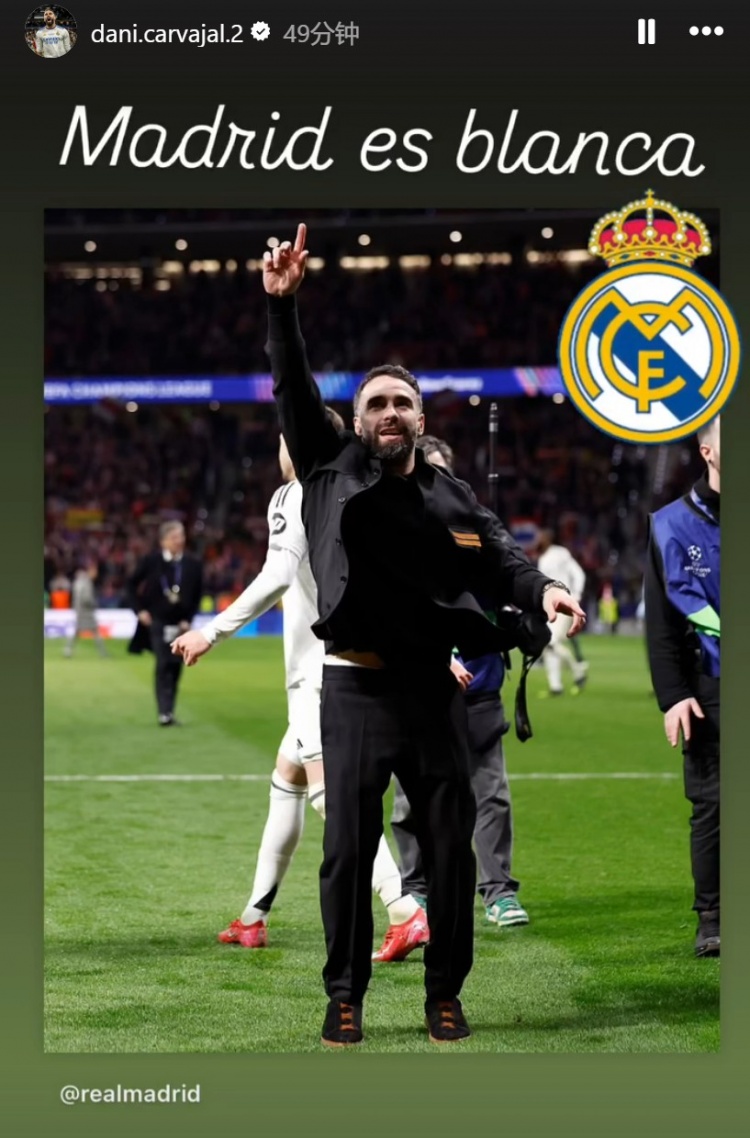 2025-03-13 17:31:25還在養傷的卡瓦哈爾曬與球隊一同慶祝照:馬德里是白色的!