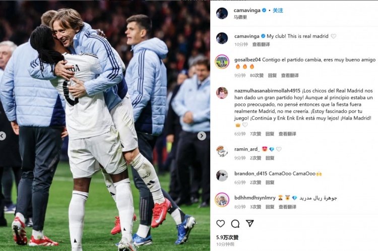 2025-03-13 17:31:47卡馬文加社媒曬點球大戰后與魔笛相擁慶祝照:我的俱樂部!