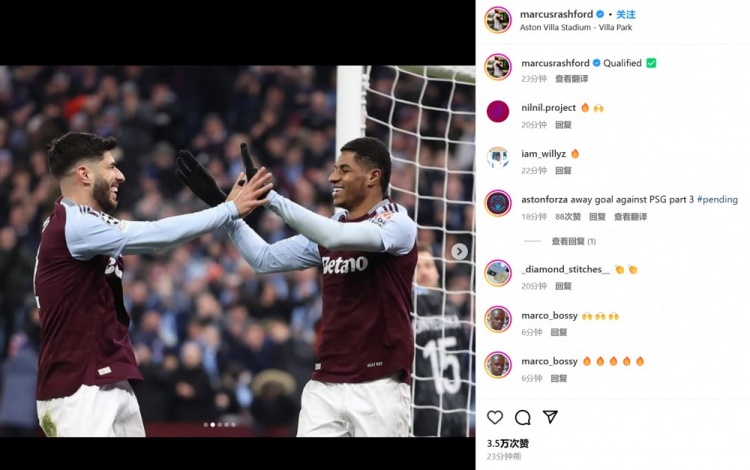 2025-03-13 17:31:50造紅牌+送助攻!拉什福德社媒曬與阿森西奧慶祝照:晉級!
