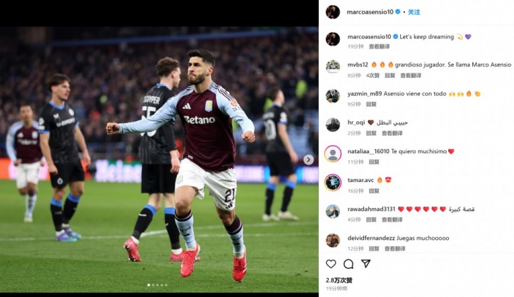 2025-03-13 17:32:438場7球&將戰(zhàn)巴黎!阿森西奧社媒曬慶祝照:讓我們繼續(xù)保持夢想
