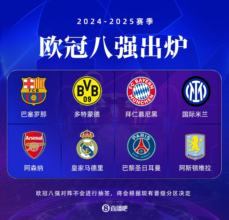 2025-03-13 17:35:35歐冠8強聯賽分布:英超西甲德甲各2隊,意甲、法甲均1隊
