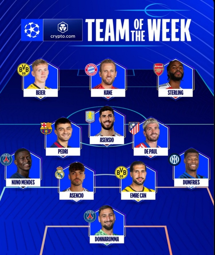 2025-03-14 00:17:27歐冠官方本輪最佳陣:凱恩領銜,佩德里、斯特林、多納魯馬在列