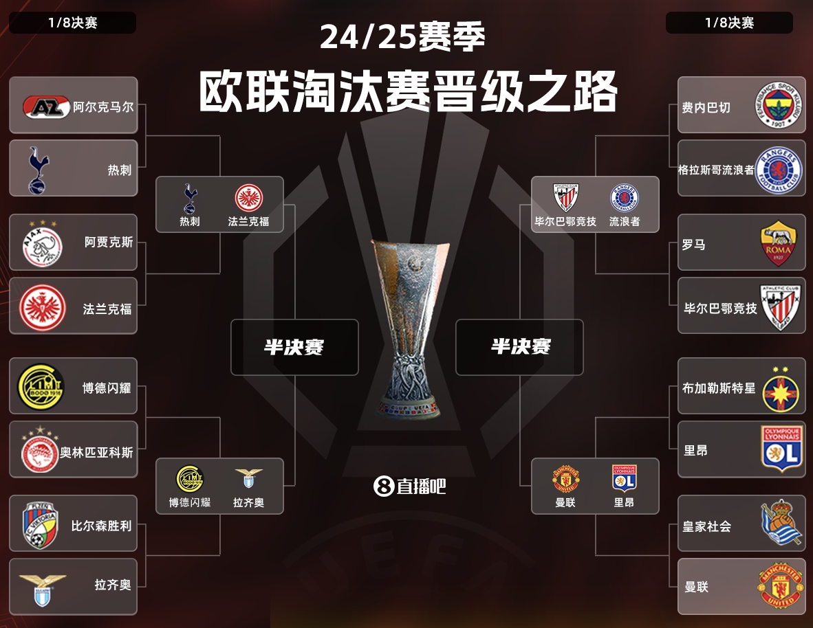 2025-03-14 07:57:52??歐聯(lián)8強(qiáng)對陣:曼聯(lián)vs里昂,流浪者vs畢巴,熱刺vs法鷹